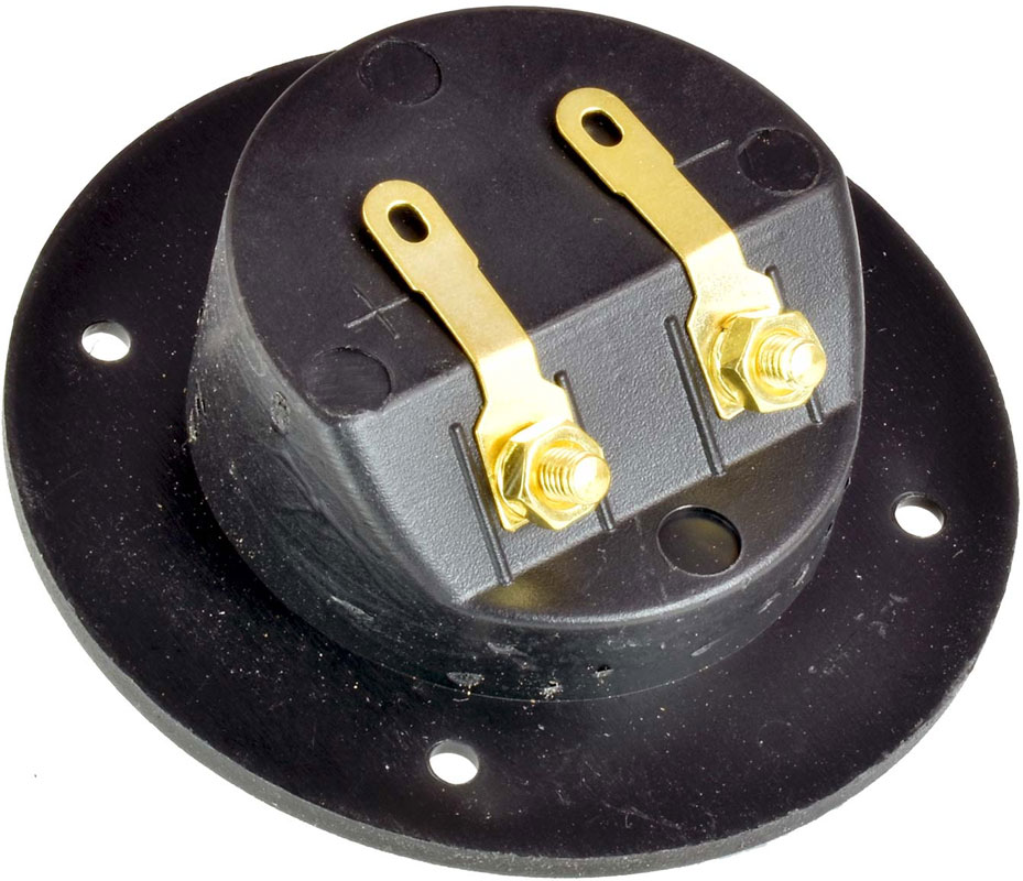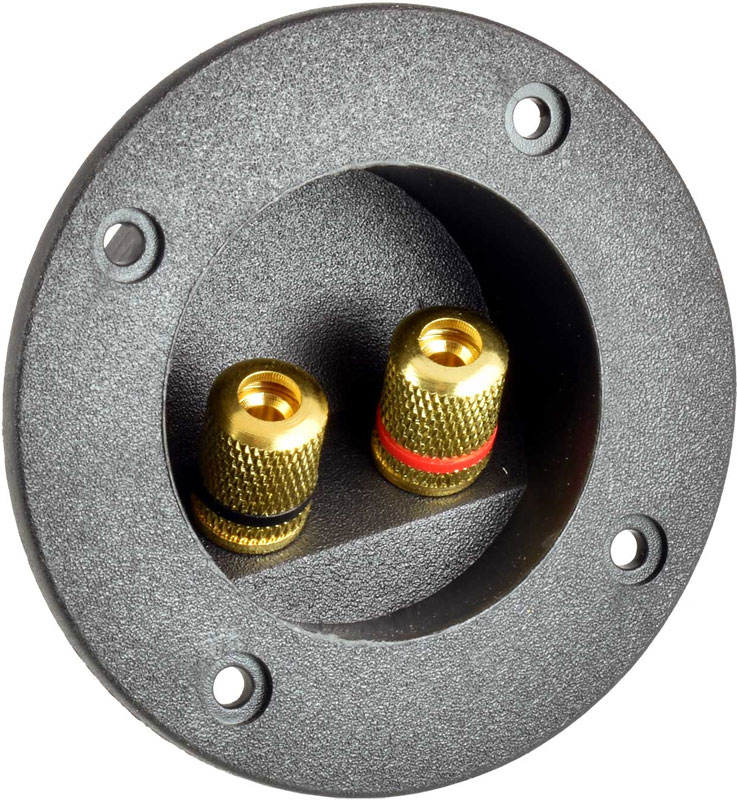 4Connect 4-600813 2 polig högtalarterminal. Håltagning 48 mm. Yttermått 75 mm. Guldpläterade skruvanslutningar för kabel upp till 8 mm eller banan kontakter. Lödöron på insidan som även passar för kabelskor bredd 5,2 mm. Pris för 1 styck.
