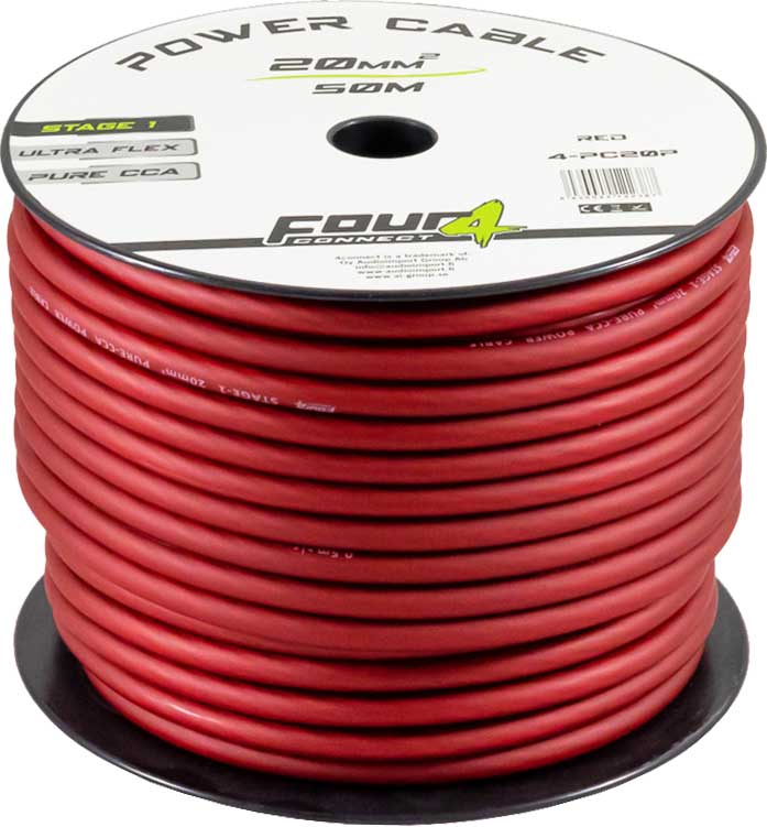 4Connect 4-PC20P 20mm² strömkabel. Gjorda av Koppar/Aluminium, CCA, med hög andel koppar. Isoleringen är gjord av Silikon som tillsammans med den fina kardeler ger en mycket flexibel och tålig kabel.