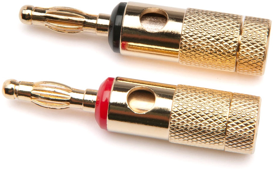 4Connect banan hankontakt. Guldpläterade kontaktytor med skruvanslutning. För kabel upp till 8 mm². Rejäl kontakt gjord helt i metall. Påbyggbar med fler banankontakter. Pris för 2 styck
