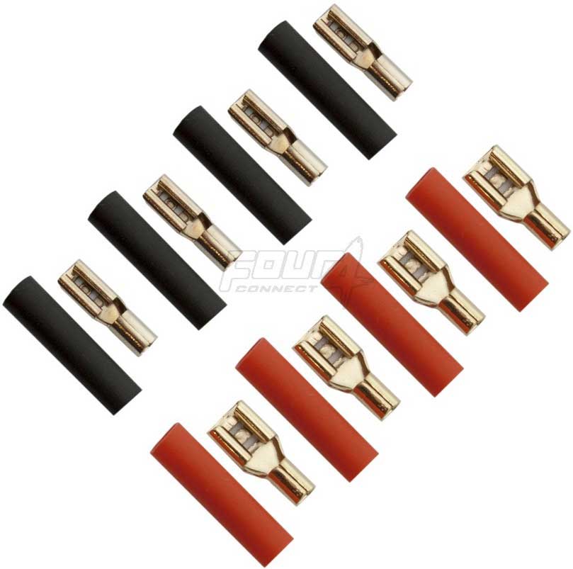 4Connect flat kabelsko för kabel upp till 2.5mm2 - Kabelsko bredd 2,8mm och 4,8 mm. Hylsor 4 x svarta och 4 x röda som kan krympas med värme. Guld förgyllda. Pris för 8 kabelskor