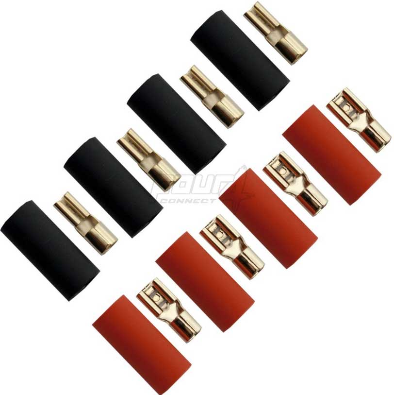 4Connect flat kabelsko för kabel upp till 6 mm2 - Kabelsko bredd 2,8mm och 4,8 mm. Hylsor 4 x svarta och 4 x röda som kan krympas med värme. Guld förgyllda. Pris för 8 kabelskor