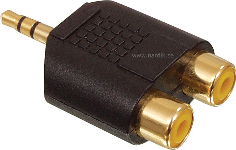 Adapter Stereo 3.5 mm AUX - 2 x RCA honor. Guldpläterade kontaktytor. Pris för 1 styck.
