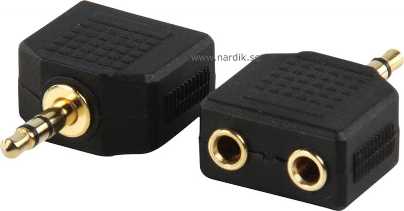 Adapter stereo 1 styck 3,5 mm hane till 2 stycken stereo 3,5 mm honor. Guldpläterade kontaktytor. Pris för 1 styck