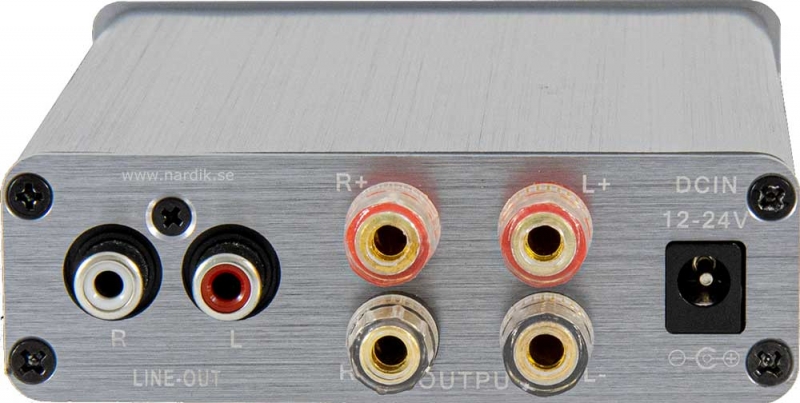 - Effekten av denna förstärkare är tillräcklig för att kunna driva vanliga högtalare i låda eller infällda inwall högtalare och det även med på höga volymer. Du kan också spela högt, eftersom effekten är förvrängningsfri! Förstärkaren minskar nivån automatiskt när signalen är i fara för att förvrängas. Automatisk styrning minskar också nivån när förstärkaren blir för varm. Högtalarutgångarna har kortslutningsskydd. Om högtalarkablar skadas, stänger skyddskretsen utgångarna direkt. Om du vill ha ännu mer kraft kan du överbrygga denna förstärkare och få mer effekt. Spänningsmatning 12-24 Volt eller med medföljande nättdel för 220 Volt.