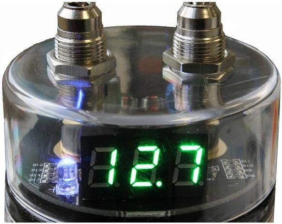 | AVI 1 Farad Kondensator. Digital visning av spänning. Kondensator fungerar som en energireserv där förstärkaren kan hämta extra ström blixtsnabbt vid stora effektuttag, t.ex. vid kraftiga attacker i basen. Basåtergivningen i ett ljudsystem är beroende på om förstärkaren får all den ström som krävs i alla ögonblick, annars blir basljudet trött och ansträngt samt kommer att sakna den riktiga "snärten". Mellanregister och diskant ges möjlighet att bibehålla sin renhet och ljudkaraktär. Du kommer att uppleva en ny dimension i ljudet vid höga effektuttag. En AIV kondensator ger snabbt förstärkaren den extra ström som behövs vid till exempel SPL spelning. En annan fördel med en kondensator är att den fungerar som en filterkondensator och hjälper till att filtrera bort störningar som kan komma via strömförsörjningen. 6 mm polskruvar. Levereras med formgjutna fästbyglar. |