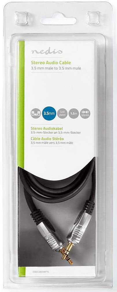 Nedis AUX kabel. Skärmad kvalitets kabel 1,5m. Koppar ledare, 2 x Ferrite kärna och guldpläterade kontaktytor. Allt för att att optimera ljudkvalitén . Pris för 1 styck