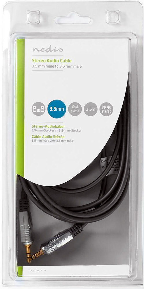 Nedis AUX kabel. Skärmad kvalitets kabel 2,5m. Koppar ledare, 2 x Ferrite kärna och guldpläterade kontaktytor. Allt för att att optimera ljudkvalitén . Pris för 1 styck
