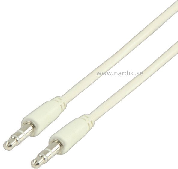 AUX kabel. Färg vit. Använd den för att t.ex. koppla in din telefon till en bilstereo. Skärmad audio stereokabel. 3,5 mm - 3,5 mm. För överföring av analoga signaler. Koppar. Rekommenderas både för bilstereon och hemma hifi. Kabellängd 1 meter. Pris - prestanda i topp. Pris för 1 styck.