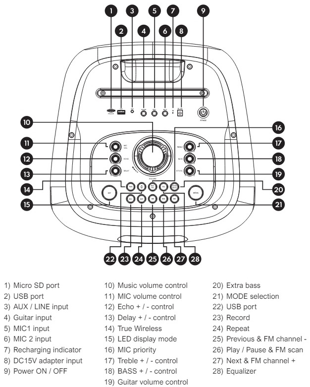 Arcsound HAZE XXL tung partyhögtalare trådlös mikrofon & Bluetooth
