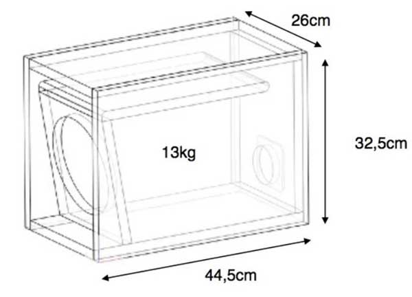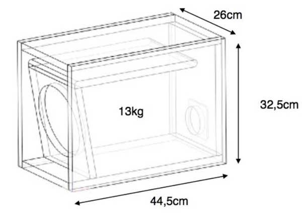 Stinger B823SL Bass Tunnel för 8” bashögtalare. Basreflex låda i MDF med slitsport med lutad baffel för extra verkningsgrad. Lådan har port och hål för element placerad på kortsidan för att skapa många möjliga placeringar. Lådan är optimerad för både snabb djupbas. 445 x 260 x 325 mm BxHxD. Vikt 13 Kg. Pris för 1 styck