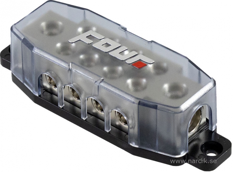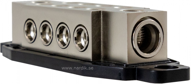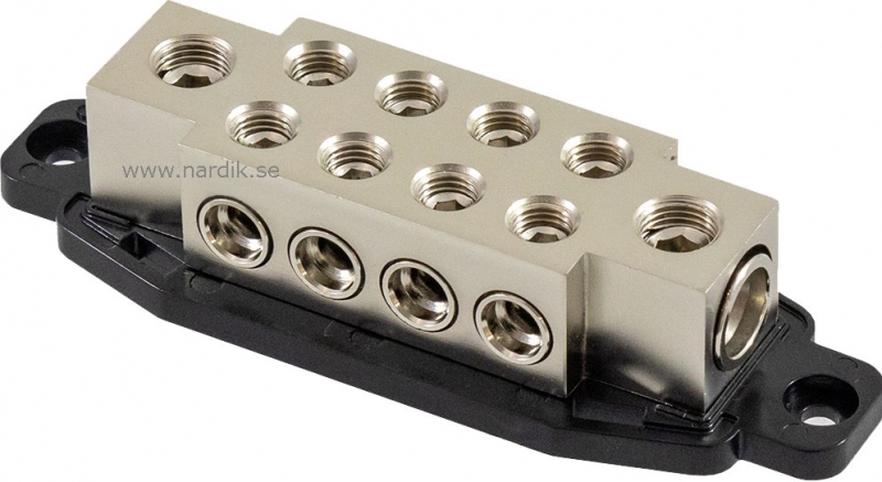Kompakt och snyggt kopplingsblock med 10 anslutningar.