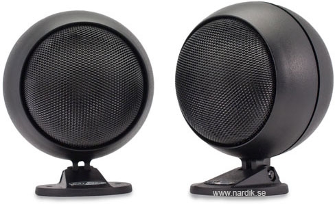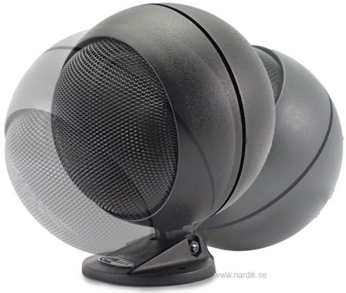Klot högtalare. Välbyggd högtalare med stort register. Klotformat retordesign ger många möjliga sätt att montera / installera. Passar bra i bilen, båten husvagnen, hemma, butik eller kontor eller överallt där en smidig, tålig och lättmonterad högtalare behövs. Fukttålig. 40 Watt max, 20 Watt RMS.