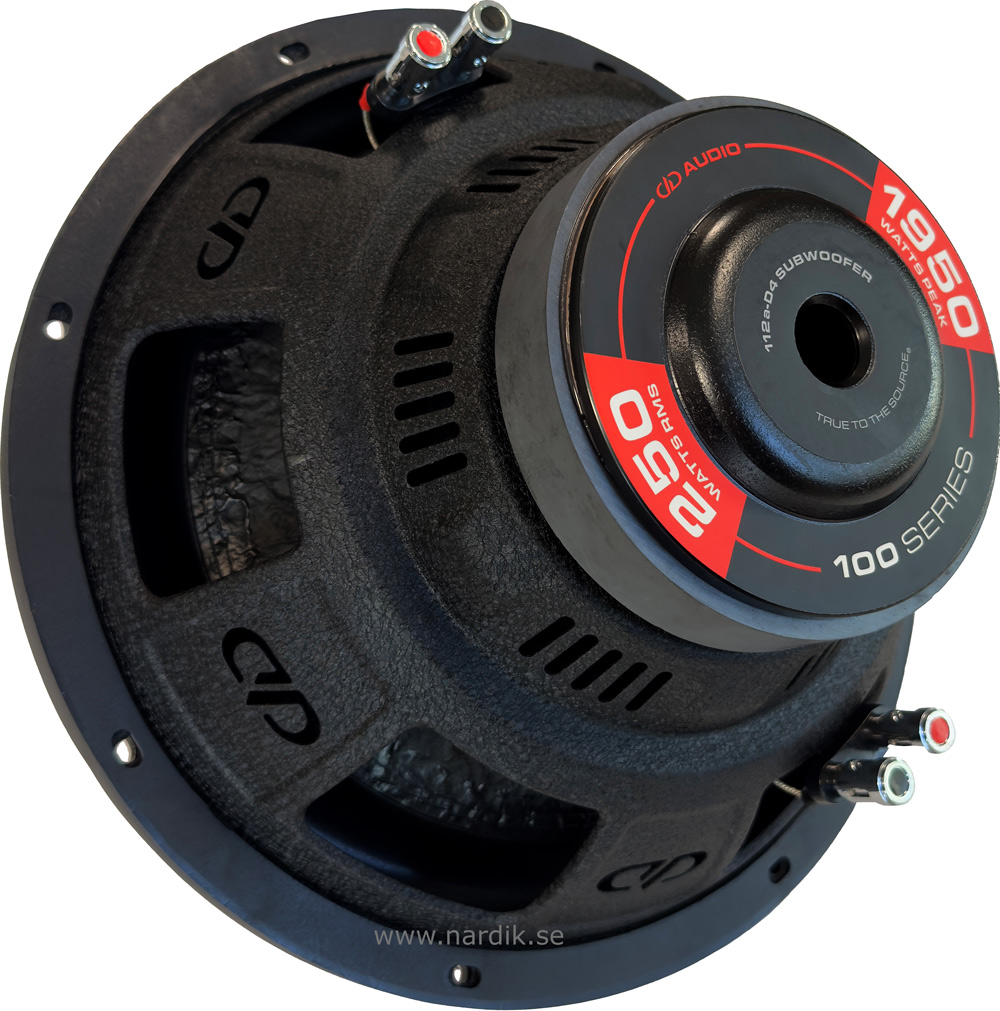 DD Audio 12" långslagig bashögtalare. 250 Watt RMS, 1950 Watt max. Dubbla talspolar 2 x 4Ω. Optimerad för ljudtryck i basreflexlåda 22-56 liter. Tokbilligt för denna bas! Pris för 1 styck