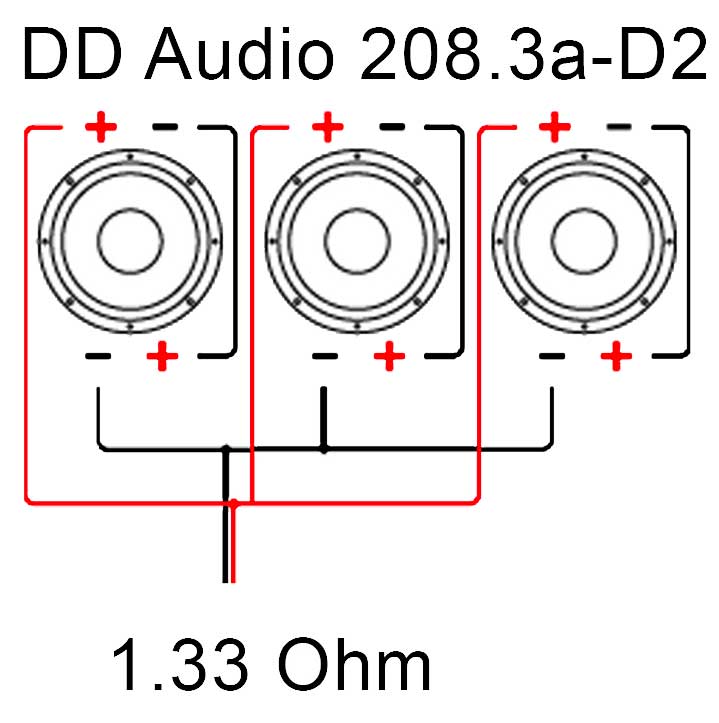 Connecting the two voice coils of each sub in series (+ to -) and the subs themselves in parallel will score the following impedance: 1.33