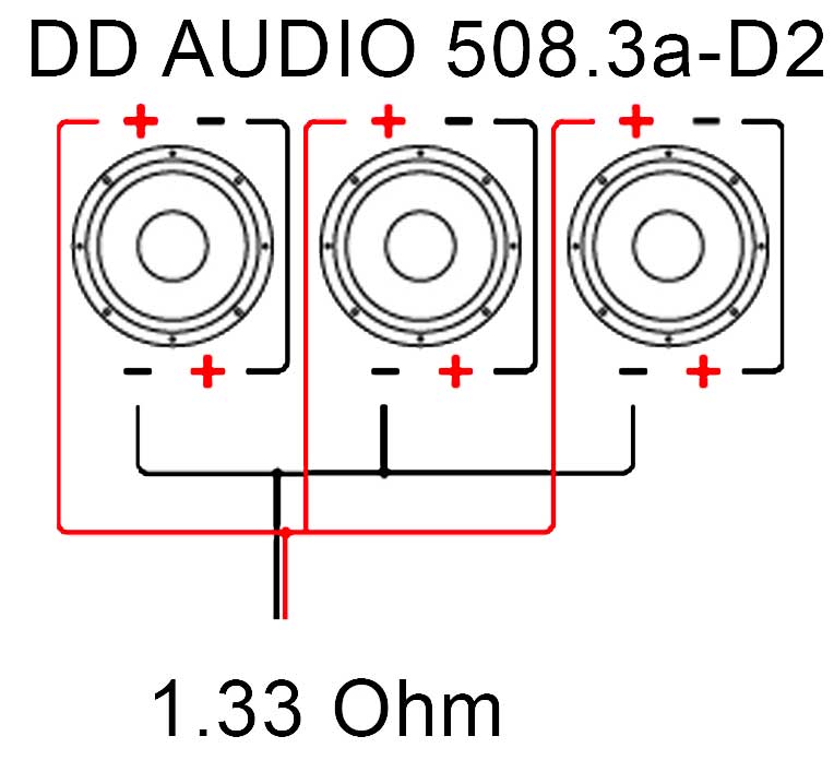 Connecting the two voice coils of each sub in series (+ to -) and the subs themselves in parallel will score the following impedance: 1.33