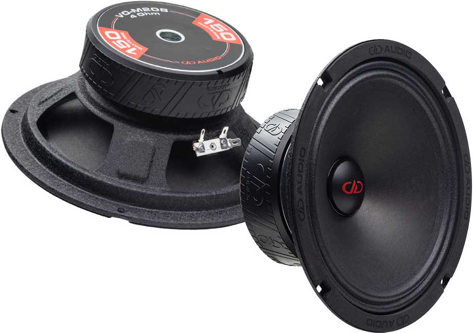 DD Audio VO-M208-S4. 8" mellanbas. 4 Ohm. 300 Watt max, 150 Watt RMS, 96 dB! Koppar Shoting Ring reducerar magnetisk distorsion. Polymer Infused Curvilinear Cone. CCA talspole. Högenergi magnet med CnC fräst platta med integrerad Tinsel kabel. Pris för ett par.