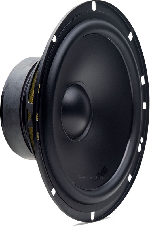 - 6,5" wooferen har en formsprutad poly-kon som är gummiupphängd i en resonansdämpad stålkorg. För reducerad induktans, förlängd högfrekvensrullning och ökad effektivitet har talspolen en dubbel slitsförare och motorn använder en utilizes a copper pole cap. Drivs med en high flux 10 Oz ferritmagnetmotor. Detta ger en mellanbas med förmåga att reproducera ett musikaliskt ljud med låg distorsion, musikalitet och fast bas.