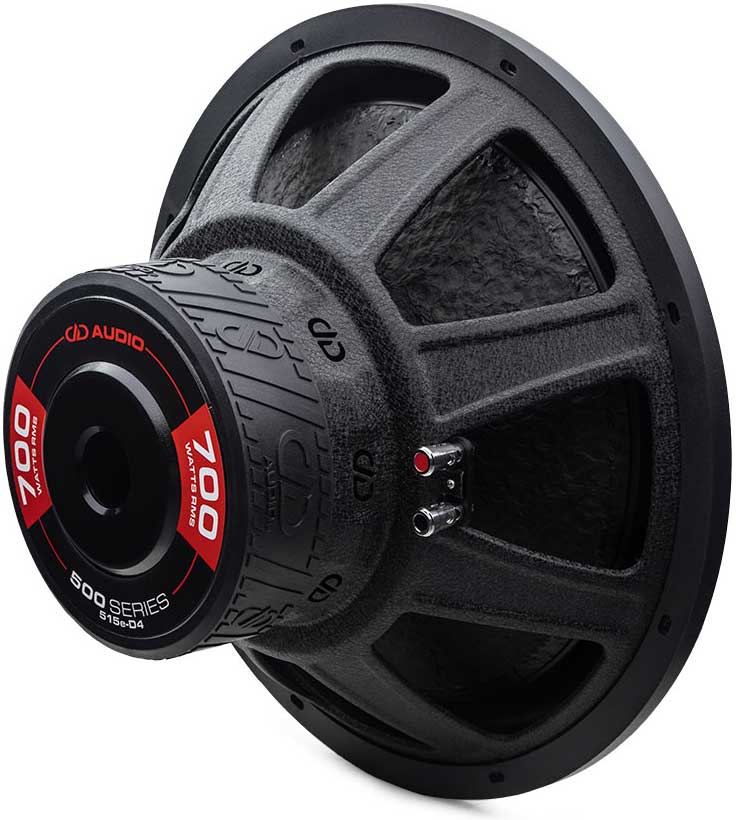 DD Audio 515e-D4 15″ Subwoofer Steel frame, 3″ voice coil, 4 x 4 Ω, 2100 Watt max, 700 Watt RMS. Lämplig förstärkare 500-1000 Watt RMS. Basreflexlåda 80-150 Liter. Framtagen för att kunna leverera djup kontrollerad bas redan med måttlig förstärkare. Pris för 1 styck