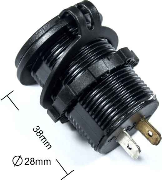 Dubbla USB uttag varje uttag klarar 4,2 Amp. Snygg voltmätare. Fuktskyddad. Vavtagpart skyddslock.