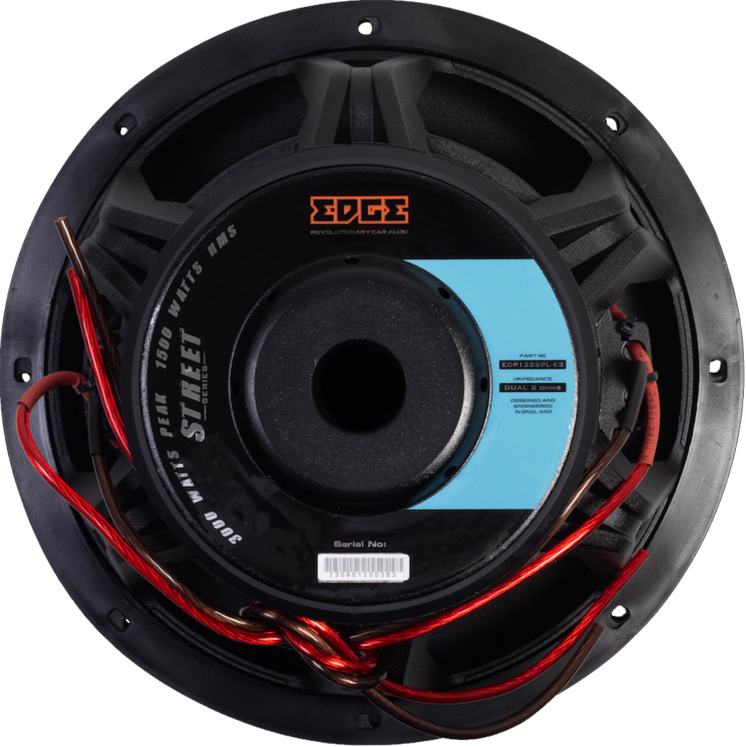Edge EDP122SPL-E3 12" SPL subbas. 4500 Watt kortvarigt, 3000 Watt SPL, 1500 Watt RMS 2x2Ω. Rejält fet subwoofer som levererar bra vibrationer! SPL när det är som roligast. Basreflex 40-80 liter Pris för 1 styck