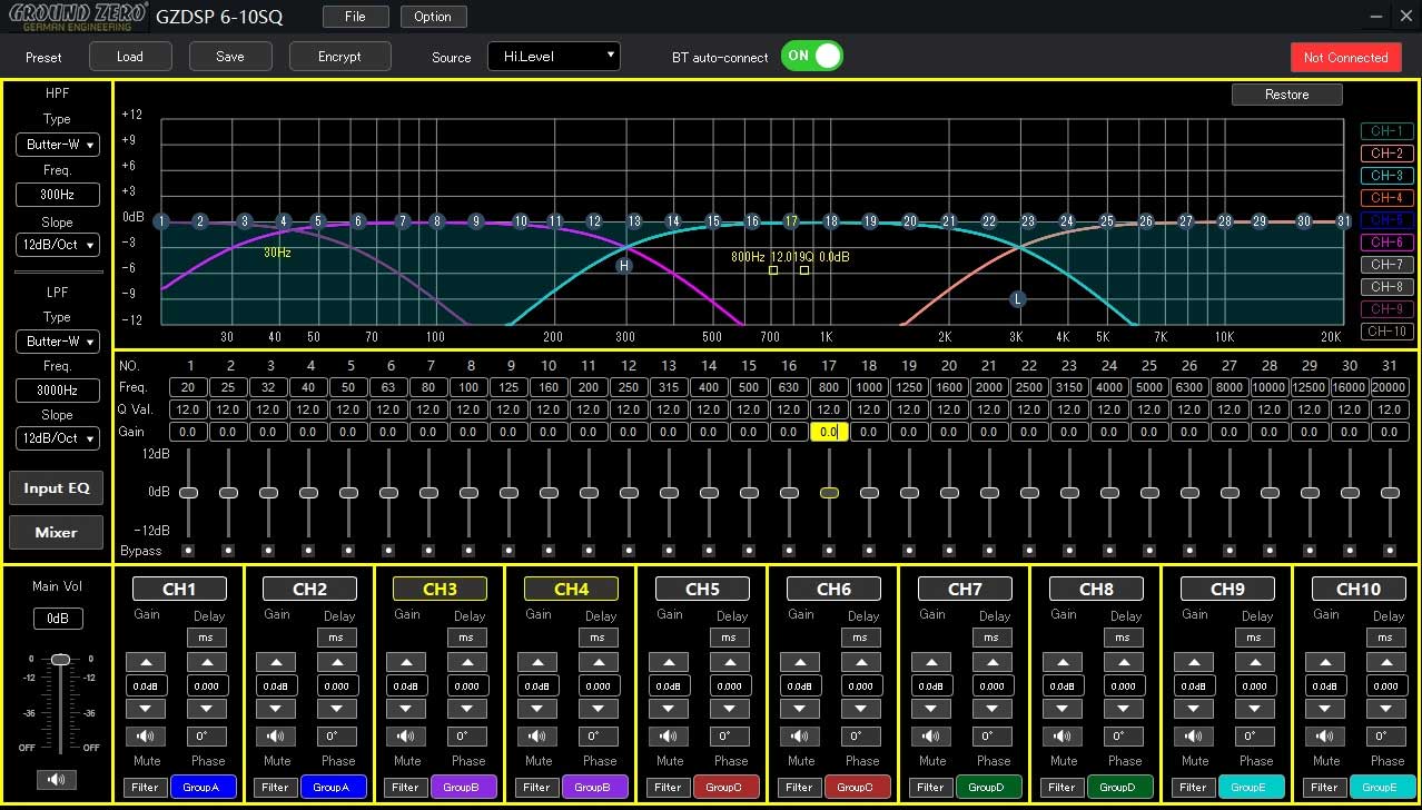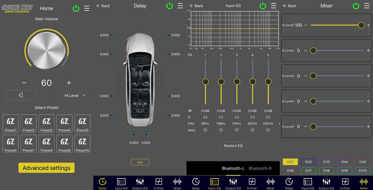 Gorund Zero GZDSP 6-10SQ Ljudprocessor. 6 RCA/högnivå in m autostart. 10 RCA låggnivå ut. Bluetooth 5.0 Windows / Android / iOS compatible Pris för 1 styck
