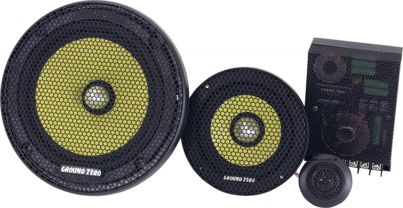 GZ Titanium GZTC 165.3X Ground Zero 3-vägs Klippel® optimized högtalarsystem. High-efficient 3Ω. 120 Watt RMS, 180Watt max. Priset för ett system