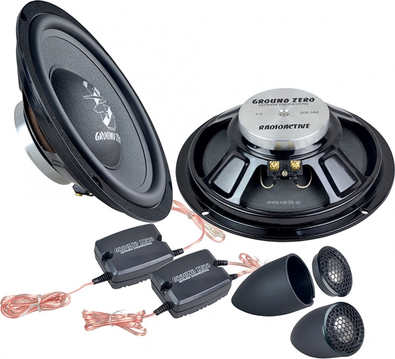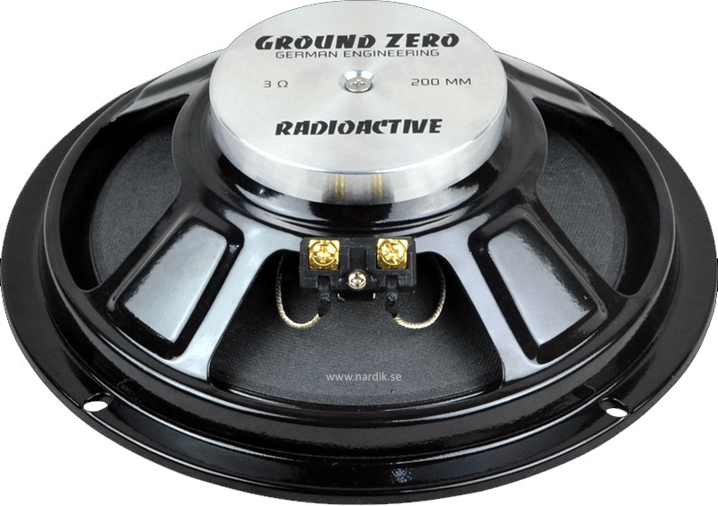 Ground Zero Radioactive GZRC 200NEO-IV 8" 2-vägs högtalarsystem. Neodymium motor Djup 57mm! Cellulosa baskon, Titanium diskant. 3Ω ger möjlighet för större effektuttag från förstärkaren. 190Watt max, 120Watt RMS. Priset för ett par. Beställningsvara