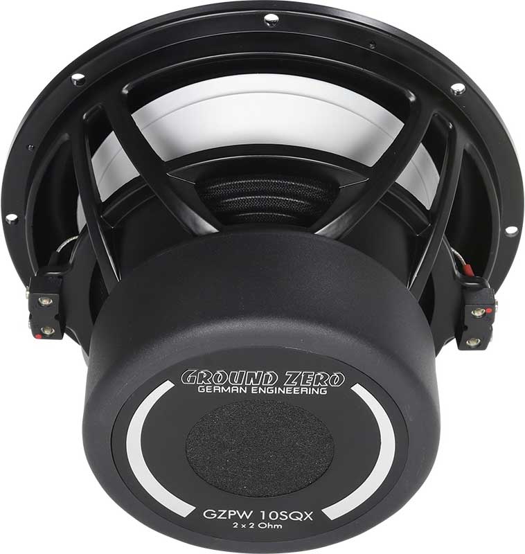 Geound Zero Plutonium, 700 Watts max, 10″, 2x2 Ω, high end SQ subwoofer, r2x2 Ω, Aluminum cast basket och Aluminum cone, Klippel® optimized, ConeGlide rubber surround, Solid Aluminum cast basket, 50 mm / 2″ copper wire voice coil, 2-layer spider, Aluminum dust cap. Rekommenderad lådvolym 18 Liter sluten. Pris för 1 styck