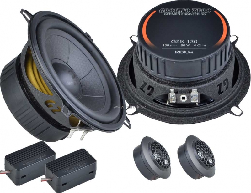 Ground Zero Iridium GZIC 130.2 ett 5,25" 13cm 2-vägs system. Instegs modellen till det berömda Ground Zero familjen! Detta system kännetecknas av ett öppet ofärgat fylligt ljud. Har en fast och distinkt bas som normalt återfinns hos dyrare system. Är lättdrivan och kan kopplas direkt till en bilstereo. För maximal prestanda kopplar till ett extra slutsteg. Rekommenderad förstärkare upp till 90 Watt RMS.
