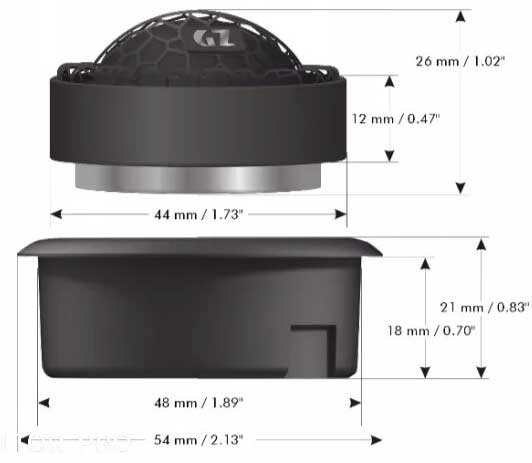 28 mm / 1.1″ high performance tweeter