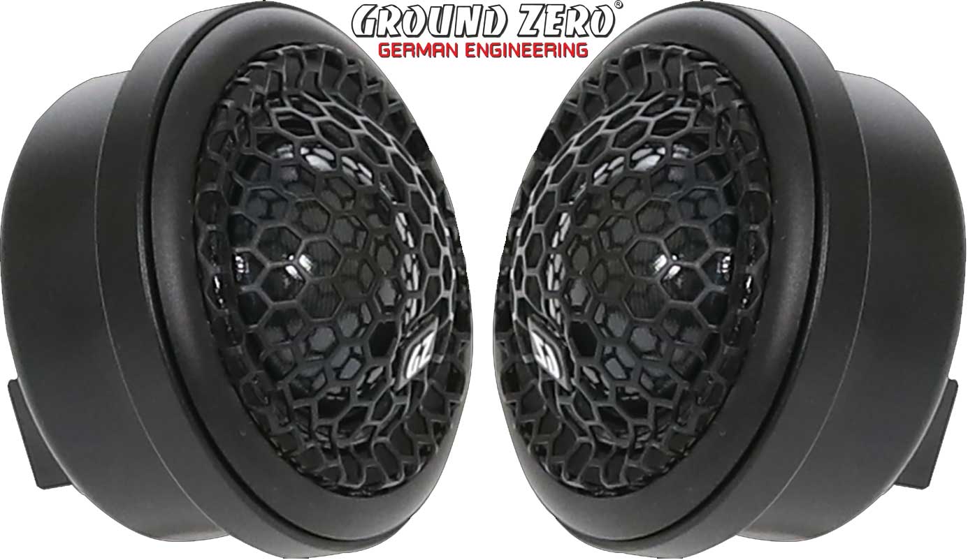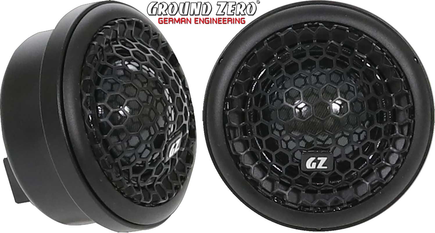 Ground Zero GZNT 28SQ 1.1″ high performance silk dome tweeter med resonans kammare. 140W max, 90W RMS. Rekommenderad delningsfrekvens 3000 Hz @ 12 dB/oct.