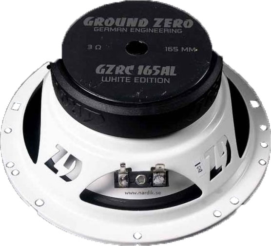 Ground Zero GZRC 165AL White Ground Zero Radioactive GZRC 165AL White 6,5" 2-vägs högtalarsystem. Aluminium baskon, Titanium diskant. 3Ω ger möjlighet för större effektuttag från förstärkaren. 190Watt max, 120Watt RMS. Priset för ett par