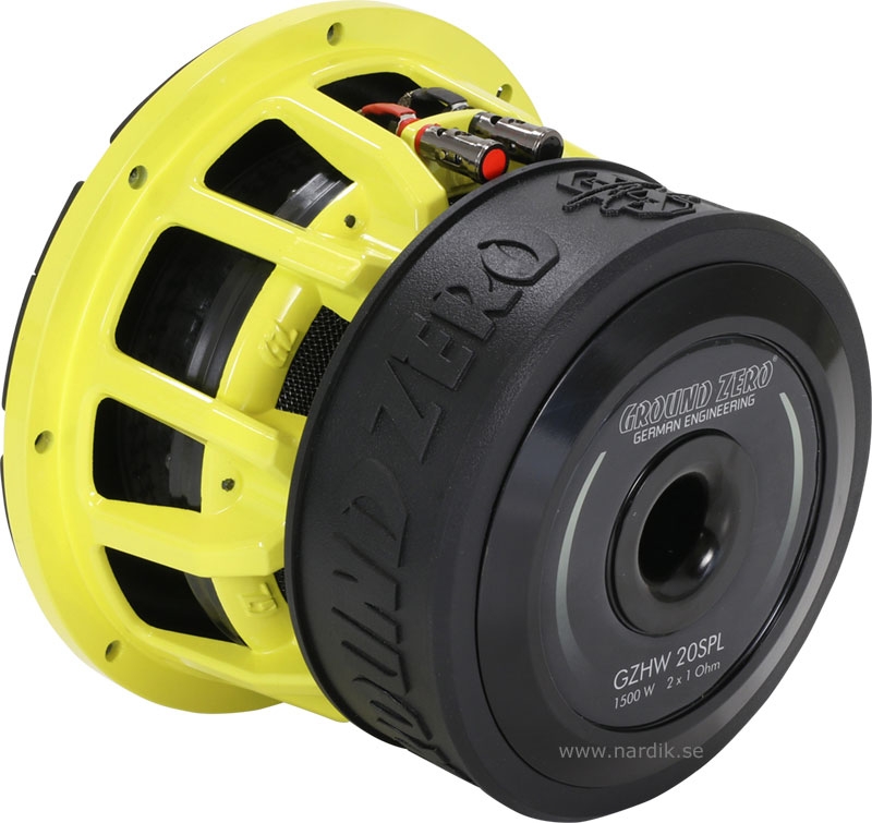 | Brutal SPL i kompakt förpackning Ground Zero Hydrogen SPL bas när för mycket är lagom! Förstärkt Cellulosa membran. 2,5", 63 mm koppar talspole. Stabil gjuten Aluminium korg. Klippel® optimized Triple-Magnet. Dubbla talspolar 1 Ohm kan kopplas 2+2, 1 eller 4 Ω. Dubbla Polycot spiders. Stort jobb har lagts på att kyla den 2,5" stora talspolen. Handsydda High-Roll sandwich surround. |