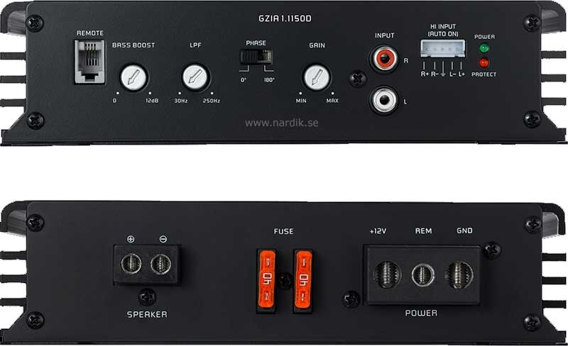 Ground Zero GZIA 1.1150D Digitalt Monoblock 1x1050Watt RMS 1Ω, 1150 Watt max. Lågpassfilter och basboost. Hög och lågpassfilter. Fjärrkontroll ingår. Pris för 1 styck