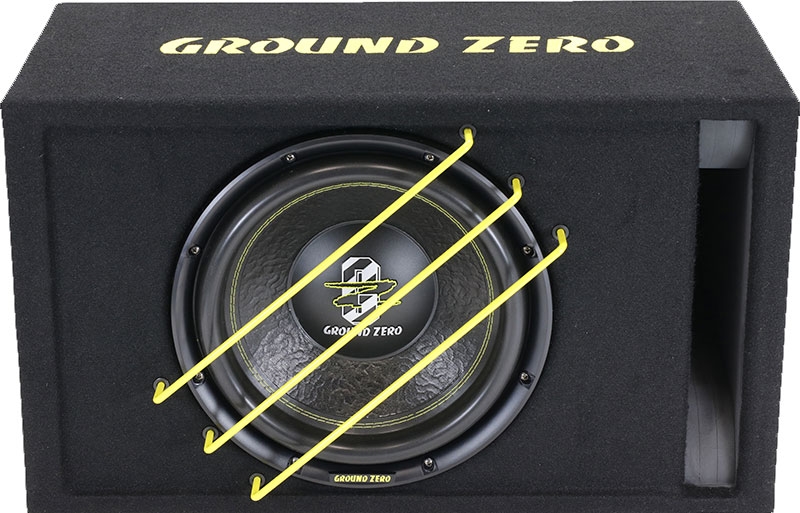 Ground Zero RADIOACTIVE GZRB 30SPL 12" subbaslåda. 1350 Watt RMS SPL. Dubbla talspolar 2x2Ω. Basreflexlåda 66,6 liter. EFP (Enchanced Flow Port) Slottport. Vikt 30 Kg! Pris för 1 styck