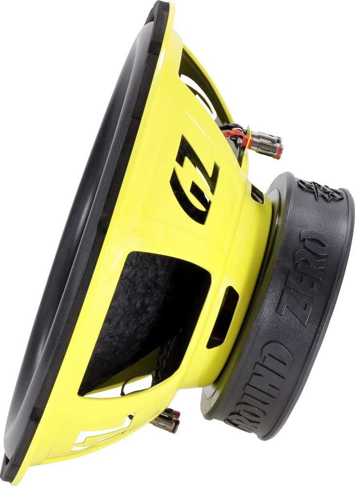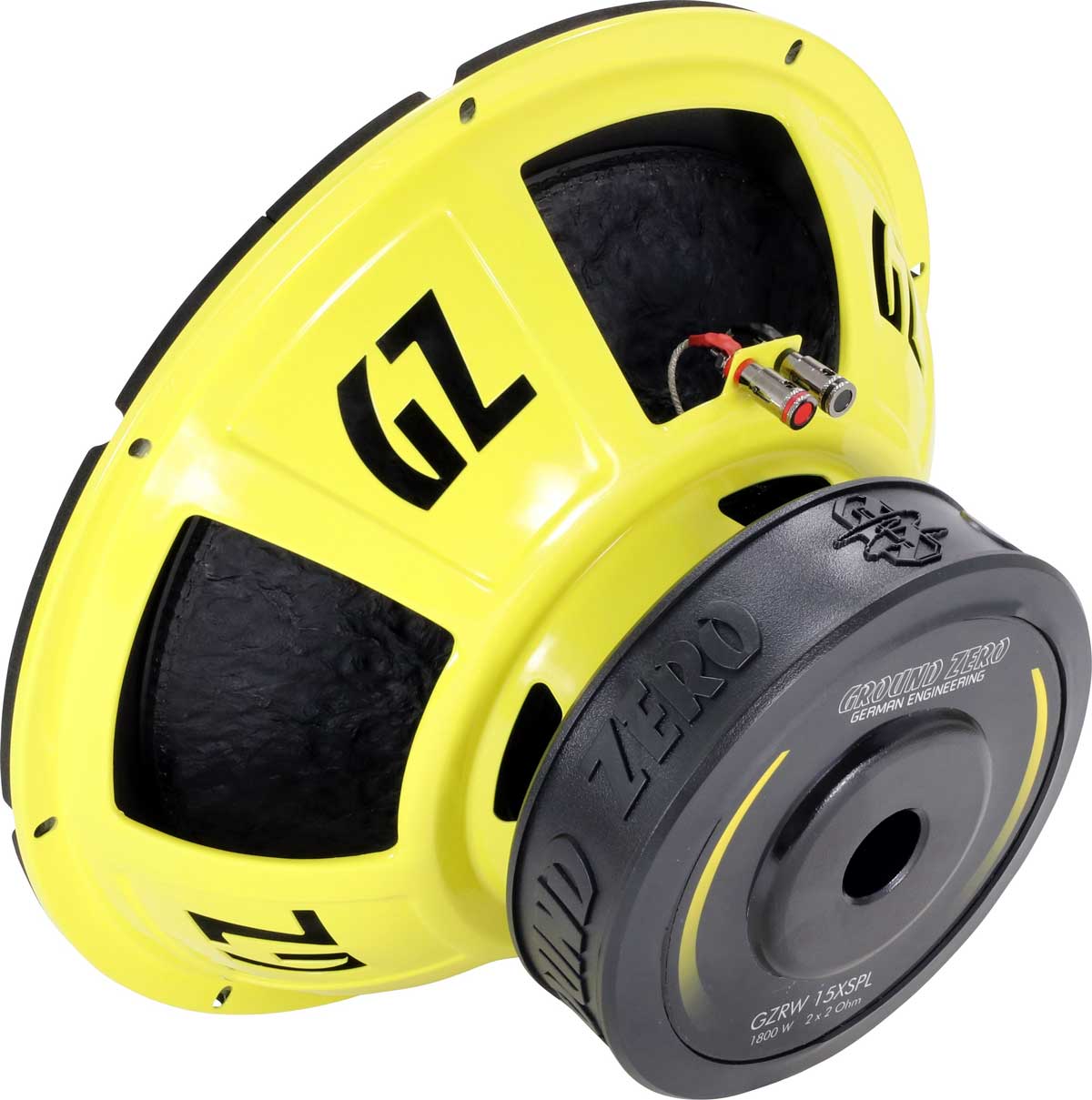 | Kvalitet och SPL Ground Zero Klippel-optimized Radioactive-subwoofers SPL bas en av markandens mest sålda mellanpris bashögtalare. Förstärkt Cellulosa membran. Dubbla talspolar 2x2 Ohm kan kopplas 2+2, 1 eller 4 Ohm. Dubbla spiders. Extra jobb har lagts på att kyla den 3" stora talspolen. High-Roll sandwich surround. 1800 Watts SPL15″ high quality SPL subwoofer with reinforced paper cone