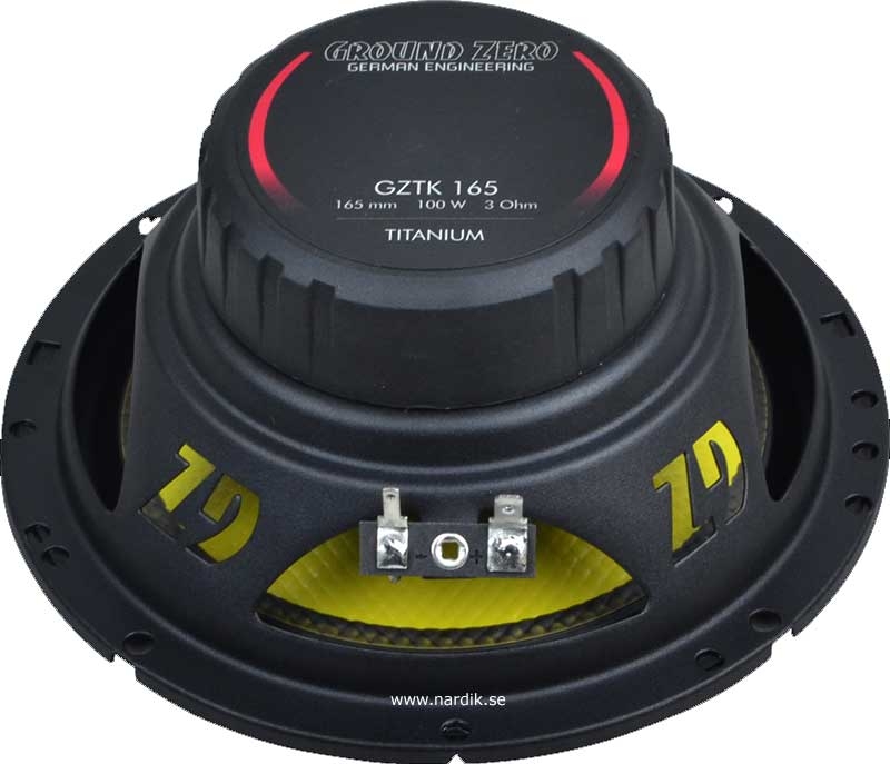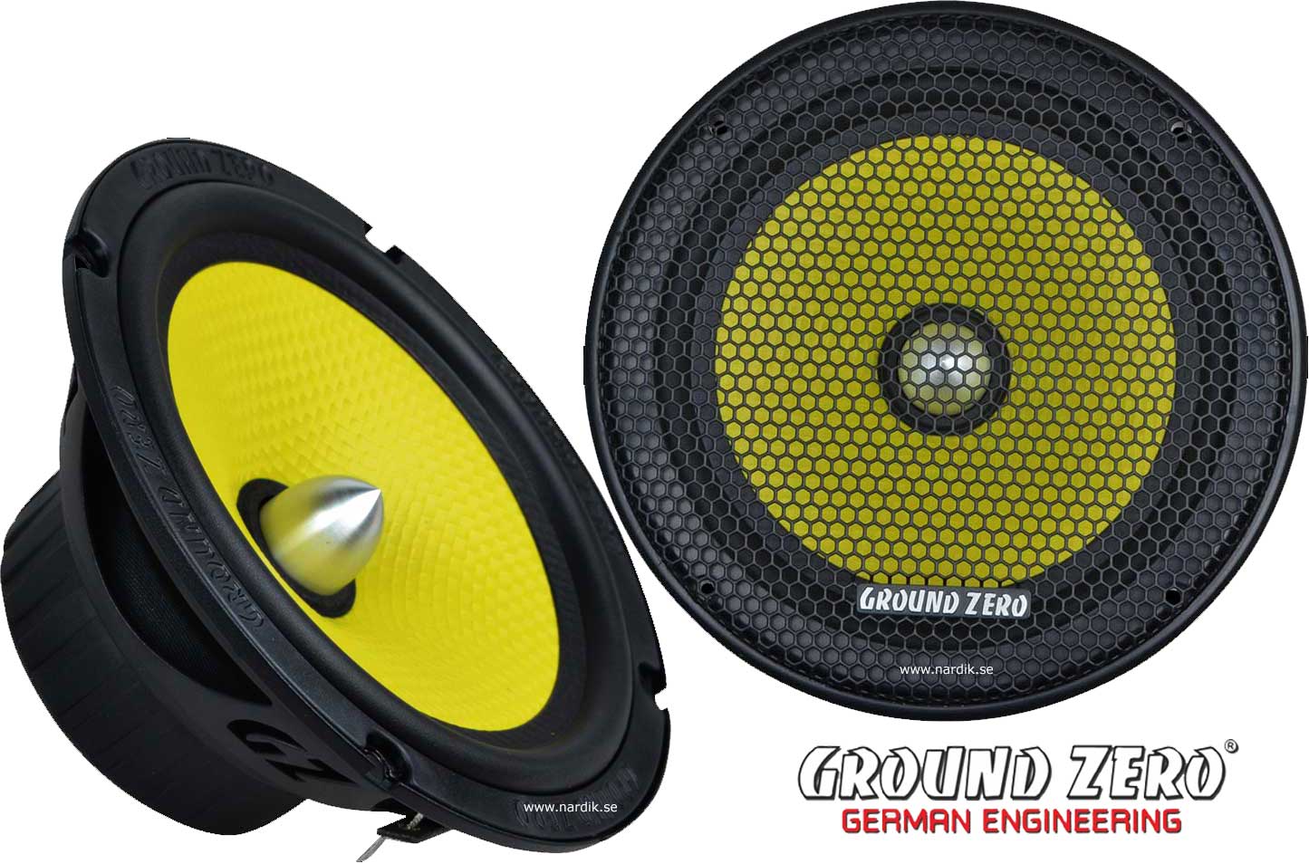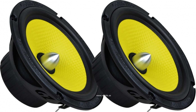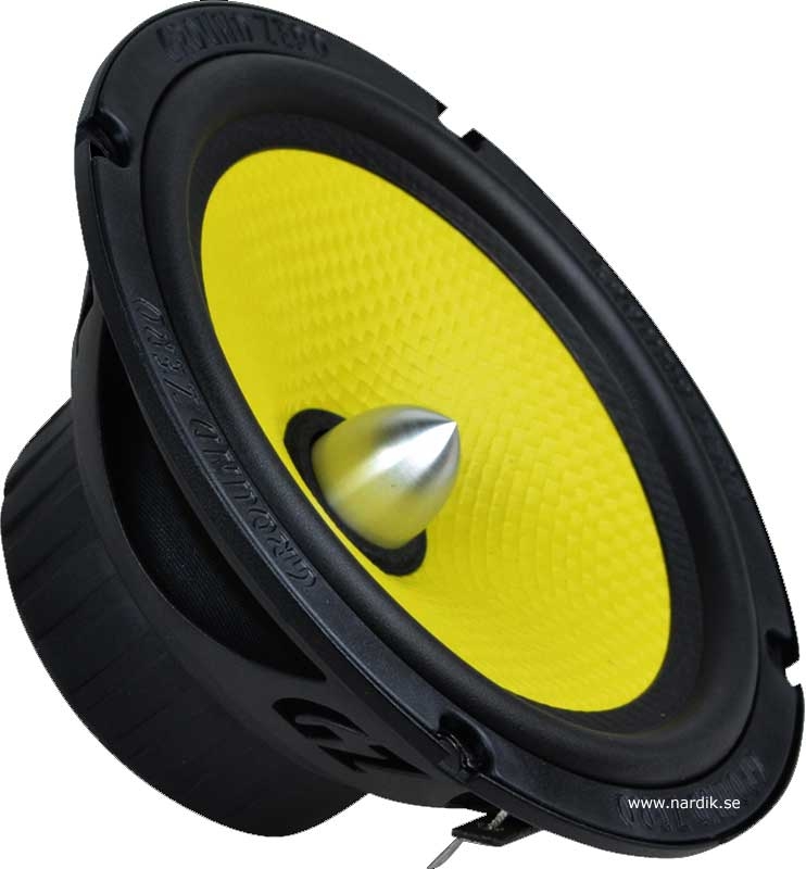 | Ground Zeros Titanium gula högtalare är en stor succé som nu även kan köpas som mellanbas. Klippel® optimierter. 6,5" 17 cm Mellanbas med tålig HQPP-Structure baskon, Pressad stålkorg med låg egenresonans och kraftig magnet med magnetskydd. Kännetecknas av ett öppet fylligt ljud. Har en fast och distinkt mellanbas. Fasplugg. Levereras med snygga galler. |