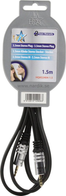 HQ Super Silver skärmad audio stereokabel. 3,5 mm - 3,5 mm. För överföring av analoga signaler. OFC koppar För bra ljudegenskaper och låga förluster. God avskärmning mot störningar. Metall kontakter med guldpläterade kontaktytor. Goda ljudegenskaper och rekommenderas både för bilstereon och hemma hifi. Kabellängd 1,5 meter. Pris - prestanda i topp. Pris för 1 styck