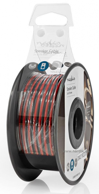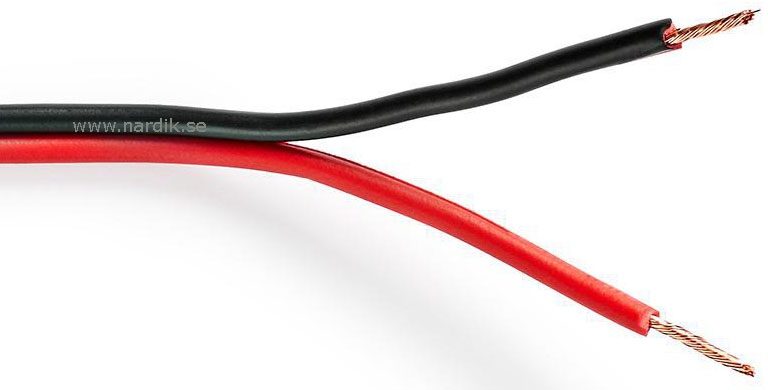nedis Högtalarkabel 2x0,75mm² 15 meter. Fintrådiga ledare av syrefri Koppar (OFC) med minimal förluster. Högtalarkabel för bil och hem högtalare. Lämplig att dra i kabelkanaler. Goda ljudegenskaper. Smidig att dra. Polmärkt, gör det enkelt att hålla koll på plus och minus. Levereras på rulle.