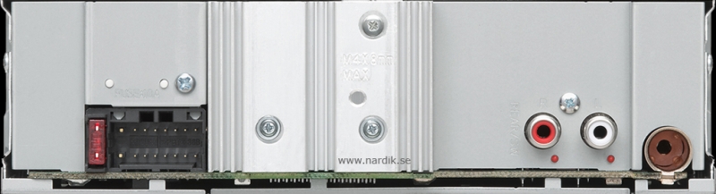 | AUX (lågnivå) ingång på fronten, 3,5 mm kontakt |
