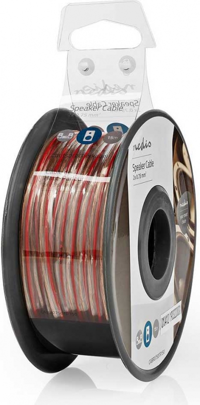 nedis Högtalarkabel 2x0,75mm² 15 meter. Fintrådiga ledare av syrefri Koppar (OFC) med minimal förluster. Högtalarkabel för bil och hem högtalare. Lämplig att dra i kabelkanaler. Goda ljudegenskaper. Smidig att dra. Polmärkt, gör det enkelt att hålla koll på plus och minus. Levereras på rulle.