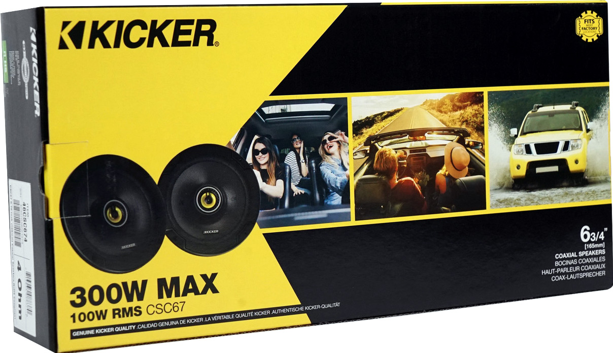 Kicker CSC67 Slimmad 6,5" 2-vägs högtalare, 300W max 100W RMS Polypropylen-kon ribbad kantupphängning