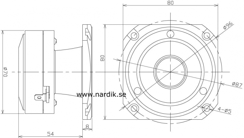 MTX RTX2BTS 1" diskanthorn 1" SPL Roadthunder Extreme Compression bullet tweeter. Mycket lättdrivna 102 dB! 400 Watt max, 100 Watt RMS monterat delningsfilter. Pris för 1 styck.