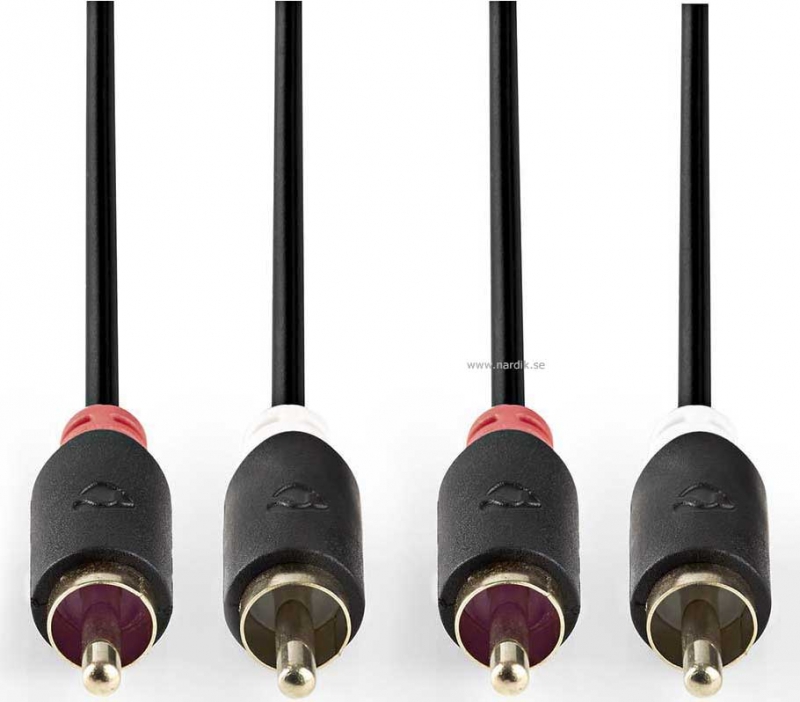 Nedis skärmad RCA Audio stereokabel. Koppar ledare. Smidig kabel för överföring av analoga signaler. God avskärmning mot störningar. Gjutna RCA kontakter med guldpläterade kontaktytor. Dragavlastning minimerar risken för kabelbrott. Kabeldiameter 2x4mm. Goda ljudegenskaper och passar både för bilstereon och hem hifi. Kabellängd 3 meter.