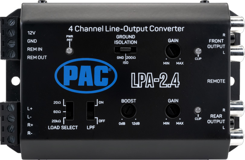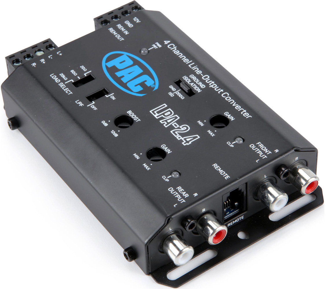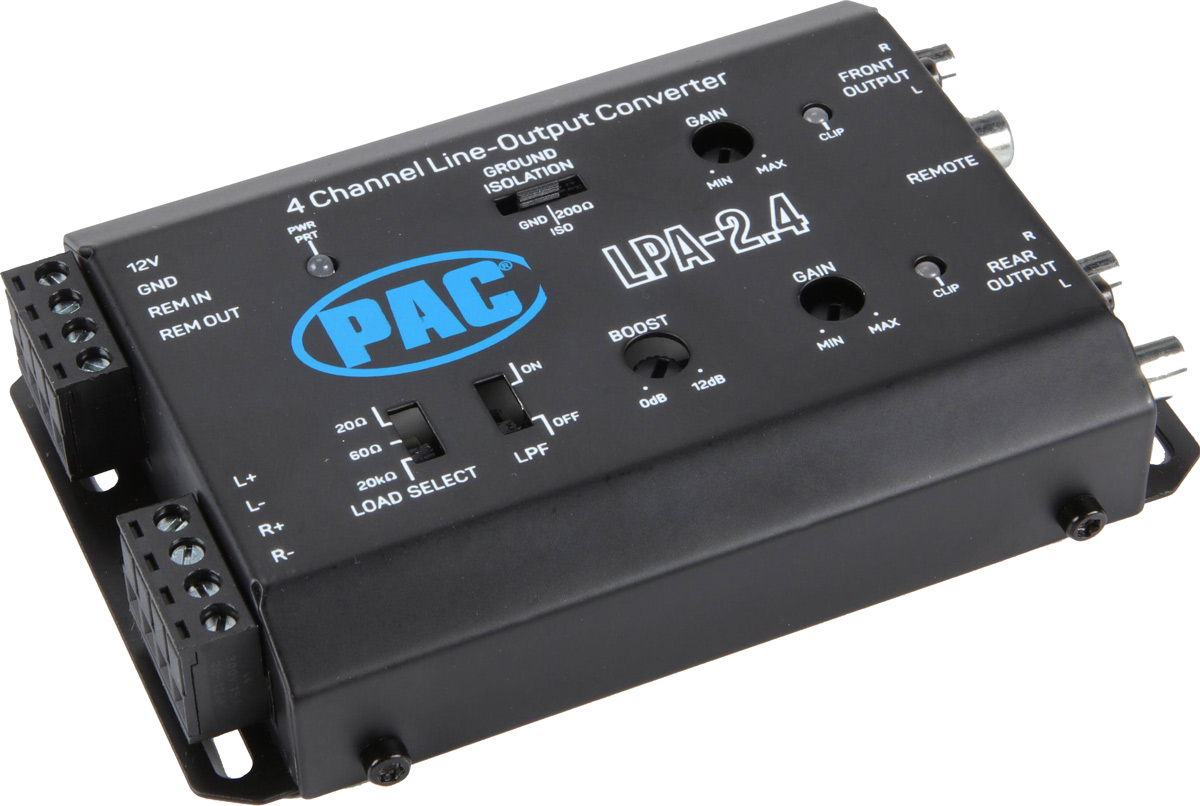 PAC LPA-2.4 Avancerad 2 kanalig aktiv hög till lågnivå omvandlare med 4xRCA ut (Fram/bak eller fram/sub) med autostart. Mycket hög ljudkvalité. Upp till 9,5 Volt ut. Utvecklad och anpassad för dagens bilar. Pris för 1 styck