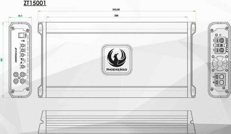 Phoenix Gold ZT15001 24 Volt. Digitalt Monoblock 1x1500W RMS 1Ω, 1x1100W RMS 2Ω Lågpass & Subsonic filter. Bassboost. Phase Control. RCA in och utgång. Låg & högnivåingång med autostart. Fjärrkontroll. Mått 383 x 160 x 48 mm! Pris för 1 styck