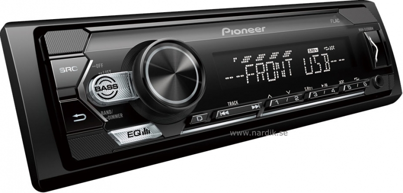 MVH-S120UBW är specialdesignad för digital musik och ansluter till din Android-smartphone och andra enheter via USB-uttaget eller iPhone via Aux-In-ingången på framsidan. På detta sätt kan du lyssna på dina favoritlåtar medan du laddar batteriet (laddas endast via USB). Eller ställa in någon av de 24 digitala FM-radiostationerna för ännu mer musik.
