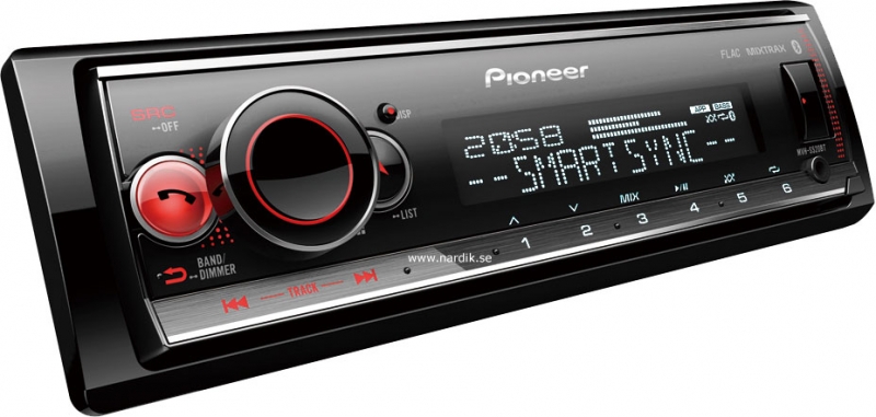 Gör inget misstag, MVH-S520BT är ett riktigt exklusivt ljudsystem för bilen. Det läser FLAC-filer, är utrustat med en grafisk equalizer med 13 band, 2 eller 3 vägs delningsfilter med subbas styrning, en bra 4 x 50 W MOSFET förstärkare, och när den parkopplas med Pioneers Smart Sync-app, tar den smartphone-anslutningen till en helt annan nivå.