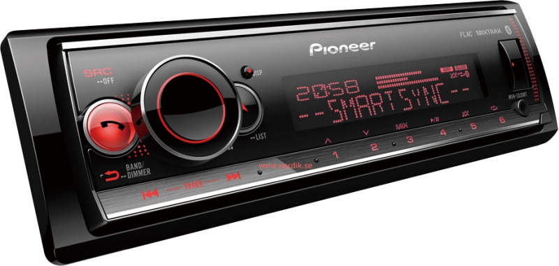 Bluetooth-anslutning gör det möjligt för säkra och praktiska handsfree-samtal, liksom trådlös strömning av musik från din smartphone. Tack vare Pioneers unika Advanced Sound Retriever-teknik är ljudkvaliteten så nära den ursprungliga inspelningen som möjligt. Du kan även ansluta två smartphones via Bluetooth samtidigt.