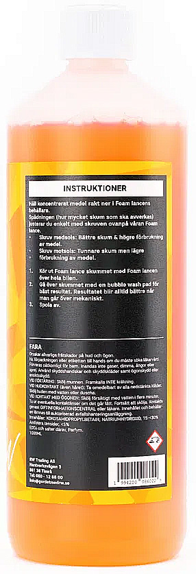 Avfettningsmedel som är utformat för att användas som medel i våra Skumpåläggare. Detta avfettningsmedel ger ett riktigt tjockt skum som stannar kvar mycket länge på lacken. Mycket skonsamt mot lackskydd och vax. Utmärkt medel att använda vid en s.k snabbtvätt. Kan blandas med alkalisk avfettning om man vill ha extra effekt mot insekter och flugor på sommaren. Passar utmärkt för rengöring av bil, husbil, husvagn, båt.
